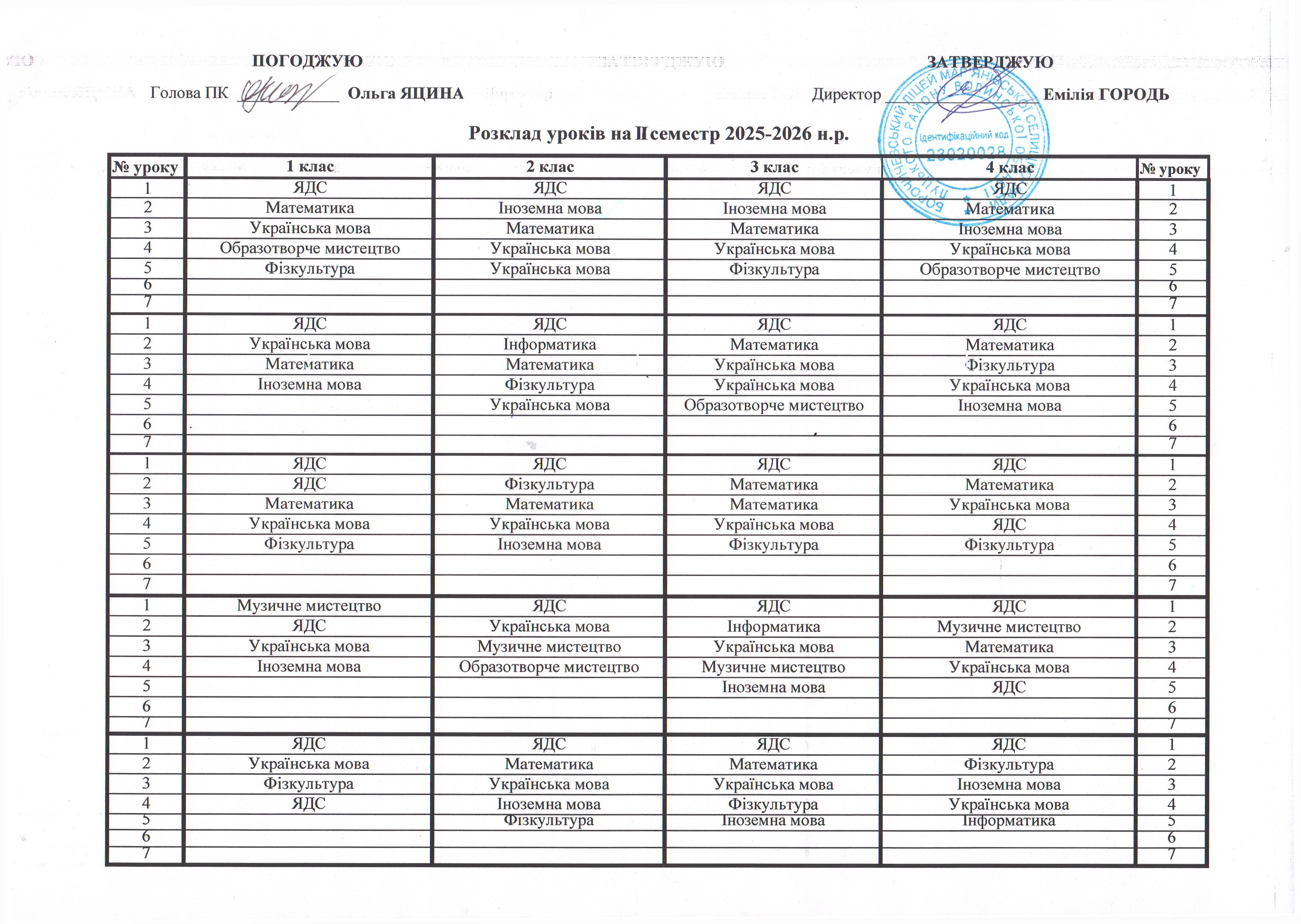 Розклад дзвінків