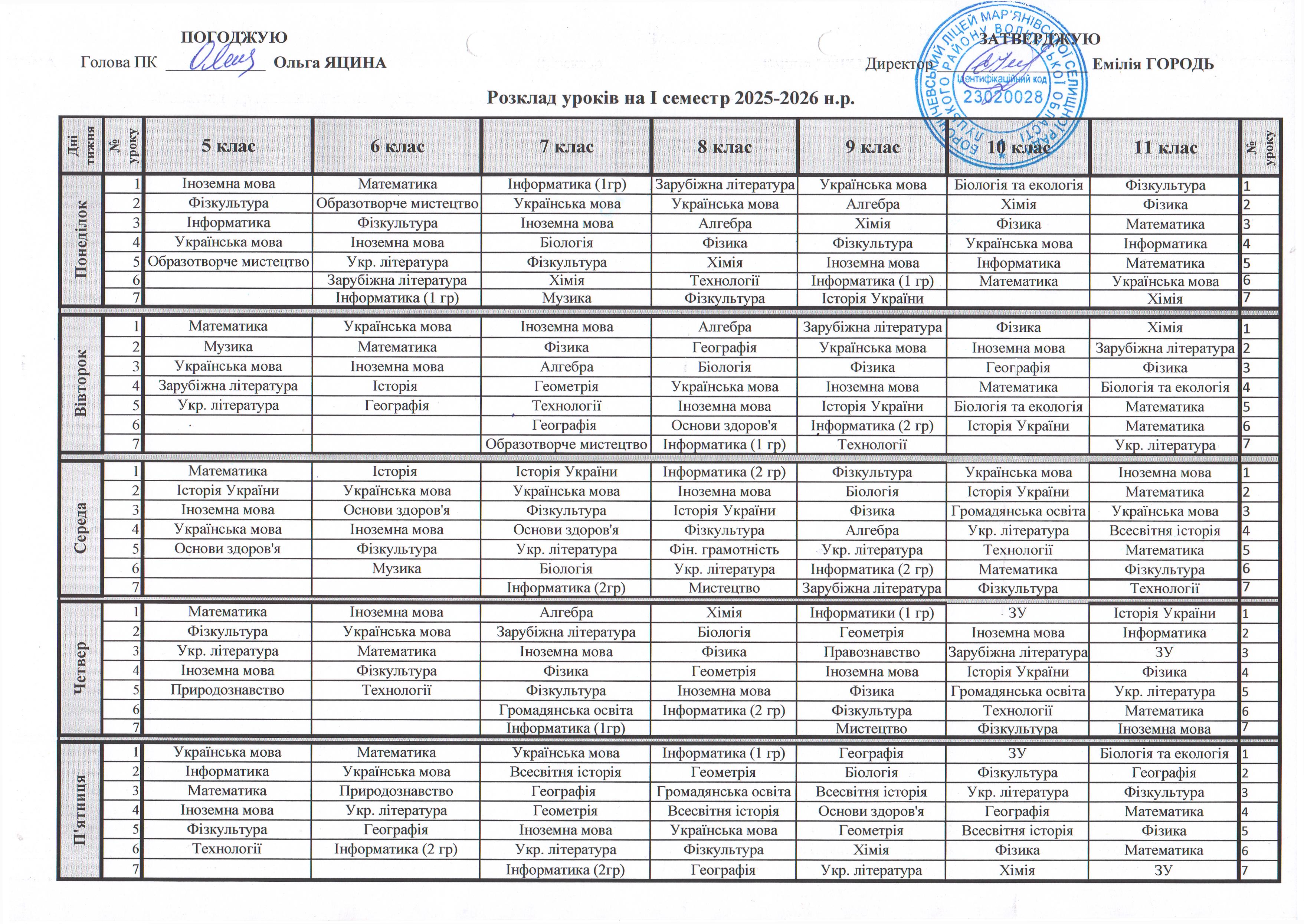 Розклад навчальних занять